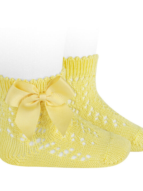 Șosete scurte galbene cu fundă laterală din tricot Condor
