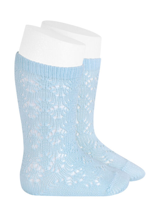 Șosete albastru deschis din tricot cu model geometric Condor (lungi)