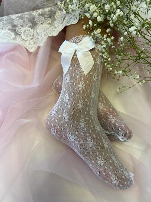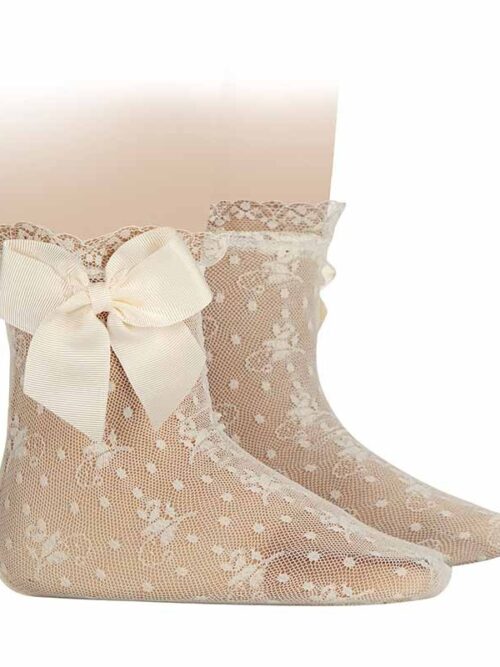 Sosete ivory scurte din dantela,cu fundita din satin,Condor