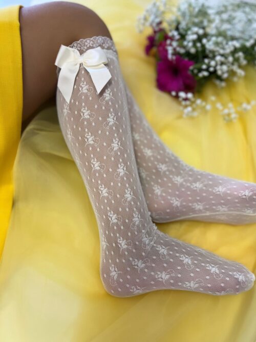 Sosete albe,lungi,din dantela cu funda din satin,Condor