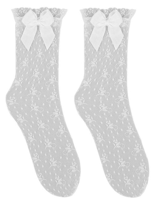 Sosete albe, scurte din dantela cu fundita din satin,Condor