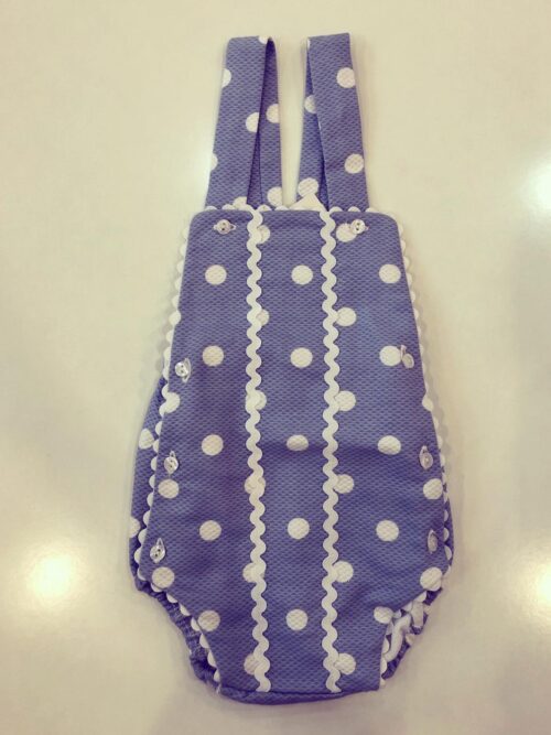 Salopetă albastră cu bulinuțe albe