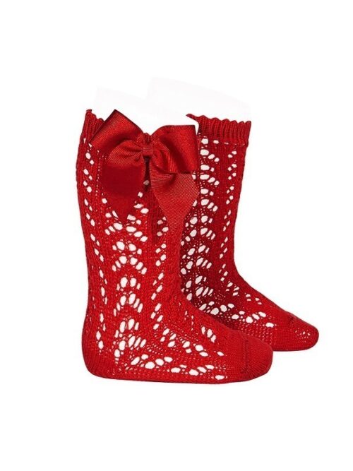 Sosete inalte din tricot cu funda satin,rosii,Condor