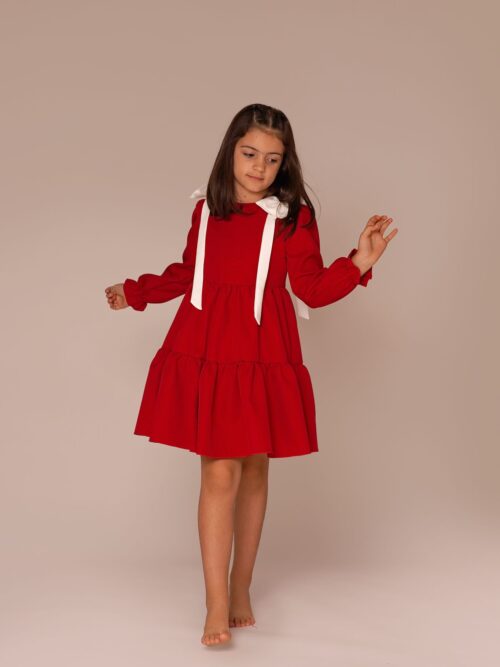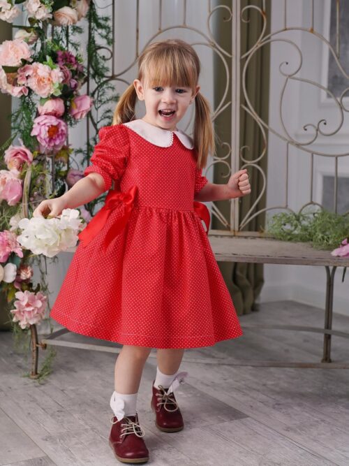 Rochiță din bumbac cu guler Red-White, Little Rose