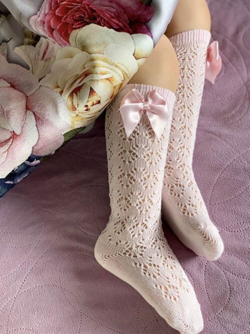 Șosete roz din tricot cu fundiță Condor (lungi)