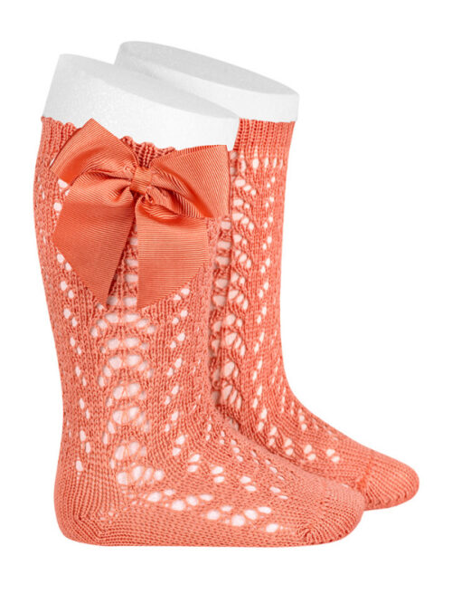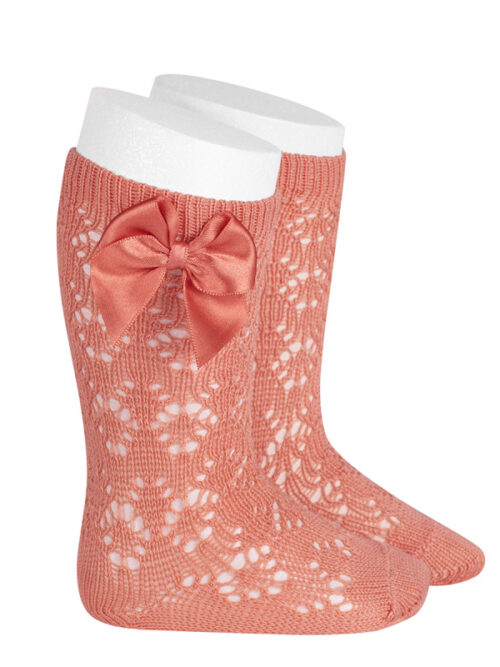 Șosete coral din tricot cu fundiță Condor (lungi)