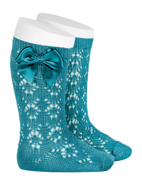Șosete azur închis din tricot cu fundiță Condor (lungi)