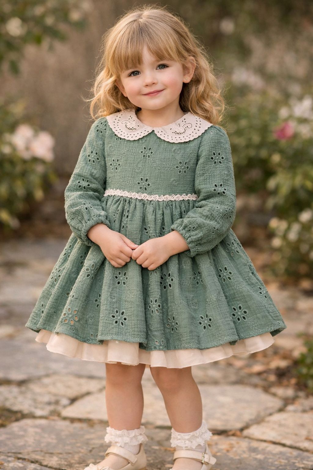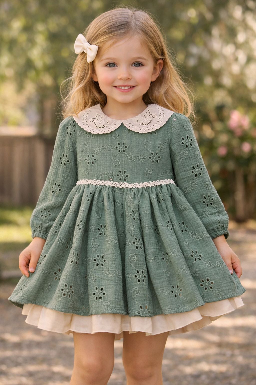 Rochie realizata din bumbac brodat ,calitate premium,accesorizata cu un guler cu broderie .