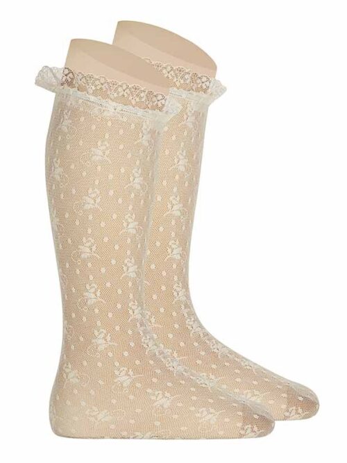 Sosete albe,lungi,din dantela cu funda din satin,Condor
