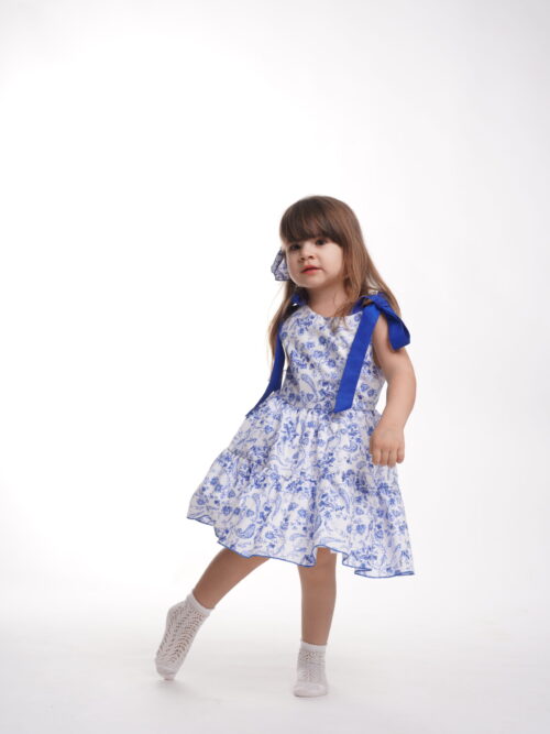 Rochita Blue-White cu bretele,Little Rose