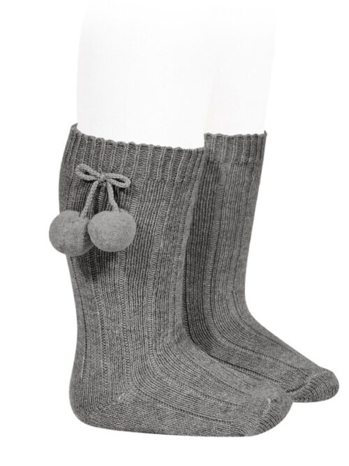 Sosete inalte gri cu pompon lateral,Condor