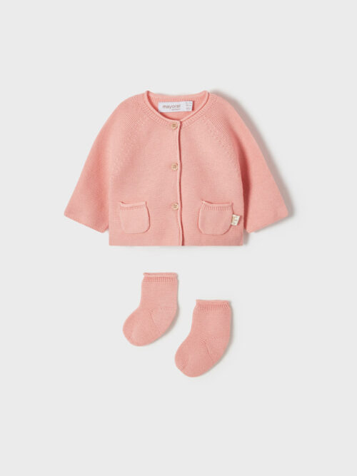 Cardigan lung și șosete blossom din tricot ECOFRIENDS new born fetițe Mayoral