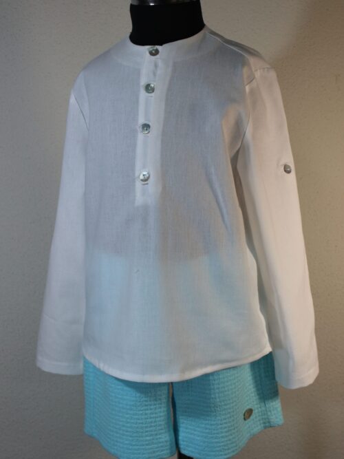 Pantalon scurt albastru deschis ce poate fi asortat cu o camasa alba pentru a avea un look perfect.