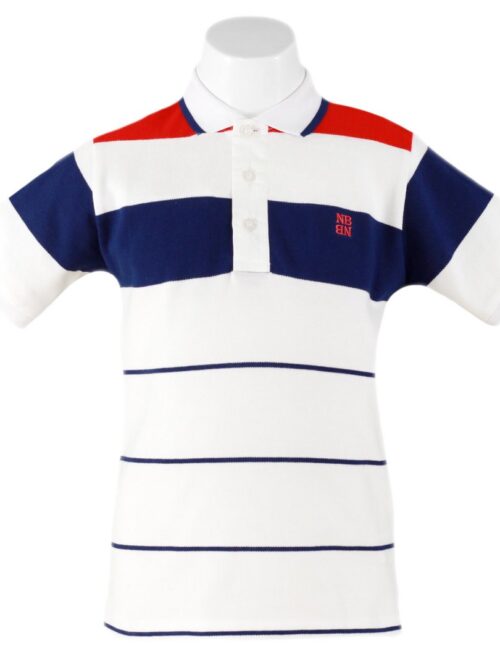 Tricou Polo pentru băieți alb cu albastru în dungi