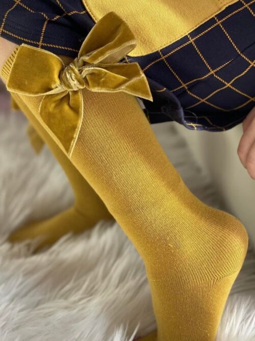 Șosete muștariu cu fundă din catifea Condor (lungi)