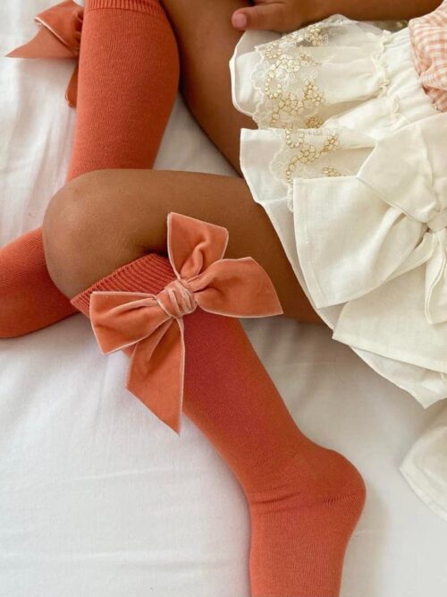 Șosete portocaliu cu fundă din catifea Condor (lungi)