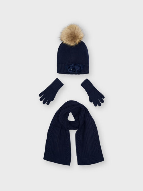Set bleumarin căciulă și fular floare fetițe Mayoral