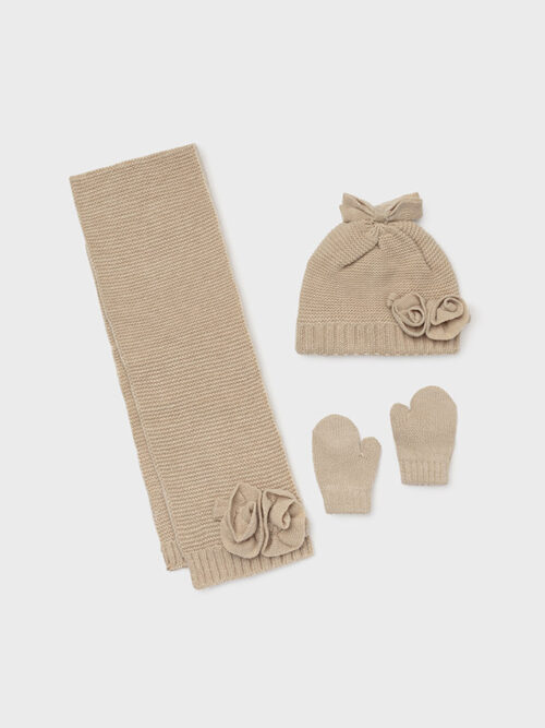 Set crem căciulă și fular flori bebe fetițe Mayoral