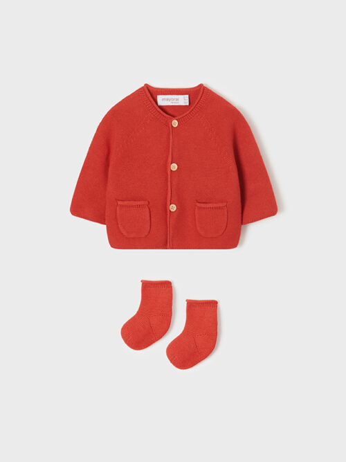 Cardigan lung și șosete papaya din tricot ECOFRIENDS new born Mayoral